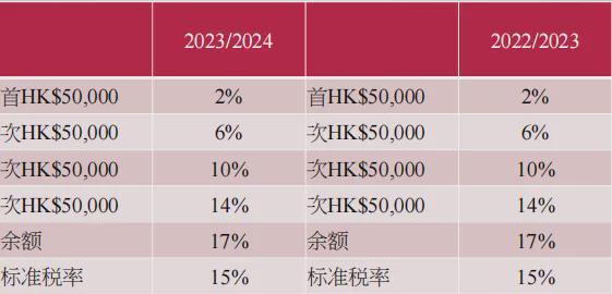 以下是薪俸税税率(以扣除免税额和可抵扣项后的应纳税所得为基准计算):